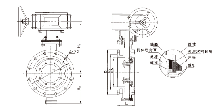 2.三维编心结构,使蝶板越关越紧,其密封性能可靠,达到无泄漏。